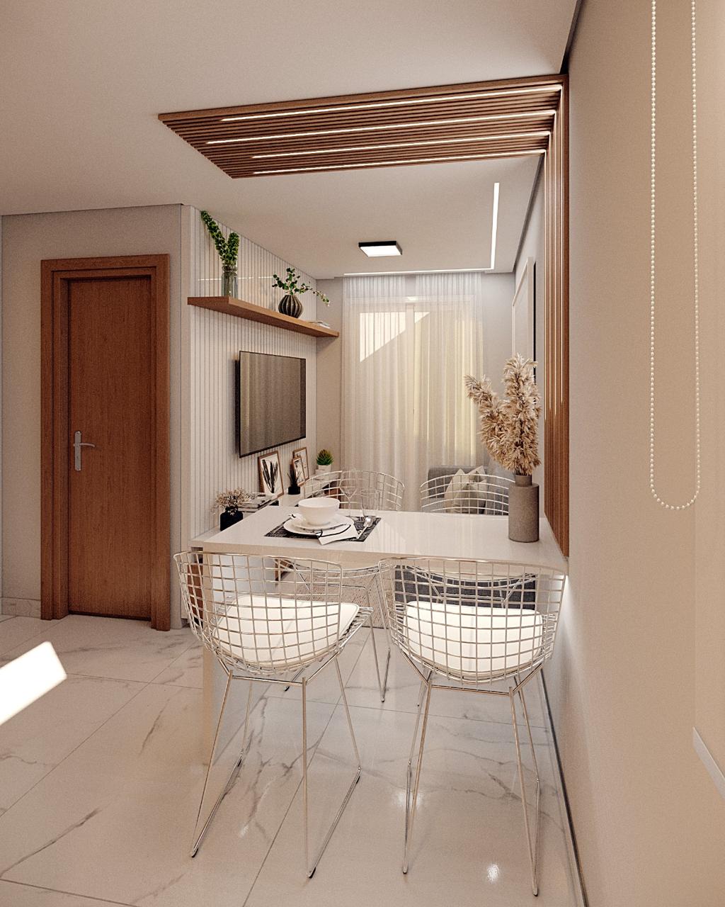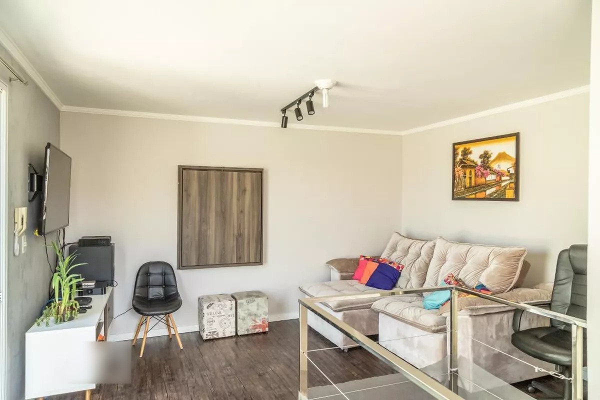 Aparamento com sala de estar e jantar, cozinha, 2 dormitórios, banheiro, lavanderia e 1 vaga.