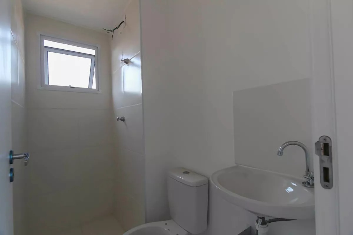 Apartamento novo com sala com sacada, cozinha, banheiro, 2 dormitórios e lavanderia.