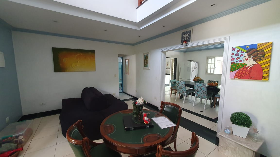 Sala de estar e jantar, sala de TV, cozinha, banheiro, 1 dormitório no térreo, 3 dormitórios com suíte andar superior e escritório.